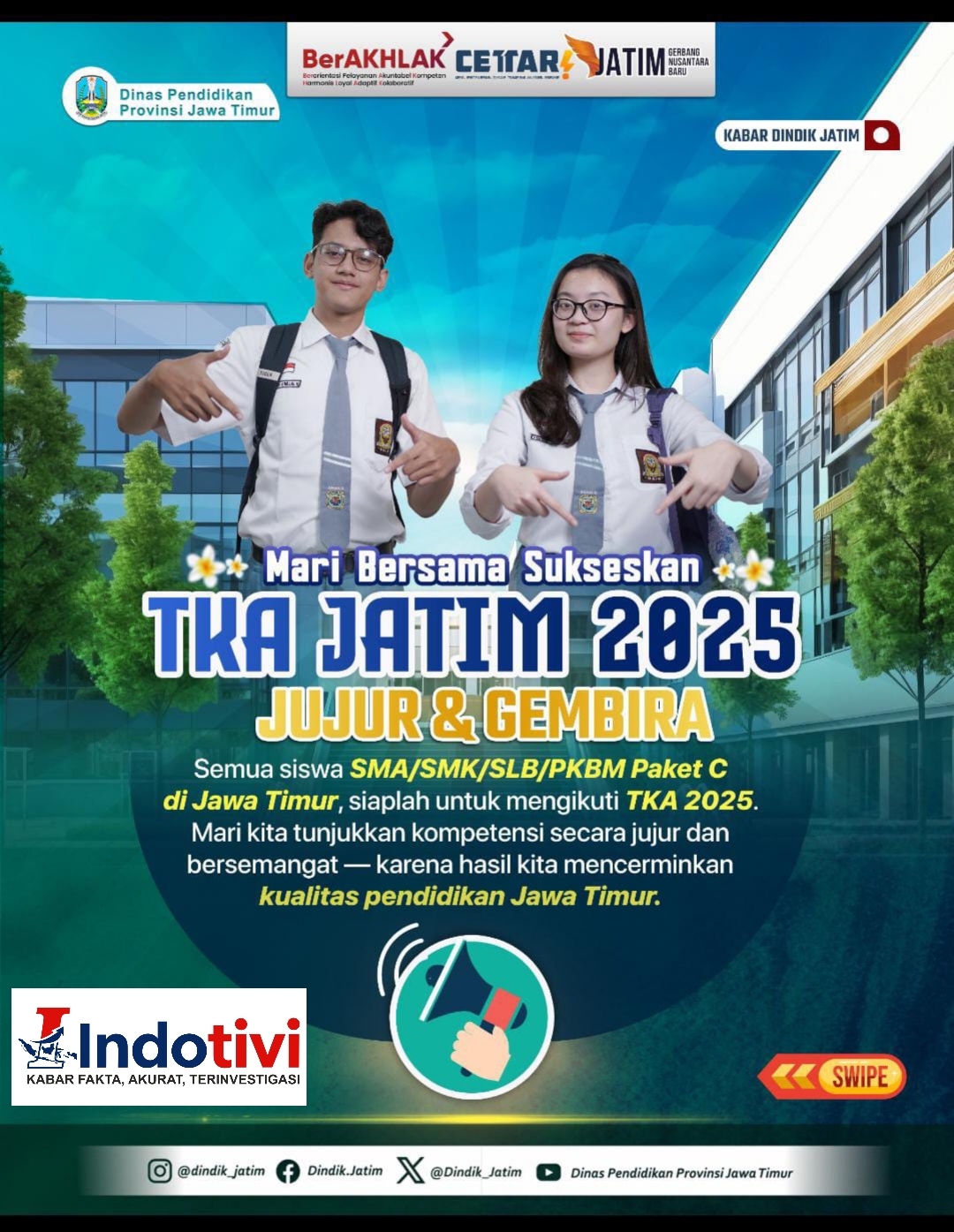 Sementara ditempat terpisah, Kepala Dinas Pendidikan (Dindik) Jawa Timur Aries Agung Paewai mengatakan Sebanyak 390.186 siswa dari 4.323 satuan pendidikan di Jawa Timur siap mengikuti Tes Kompetensi Akademik (TKA) yang digelar serentak mulai Senin (3/11) hingga Kamis (6/11) mendatang.