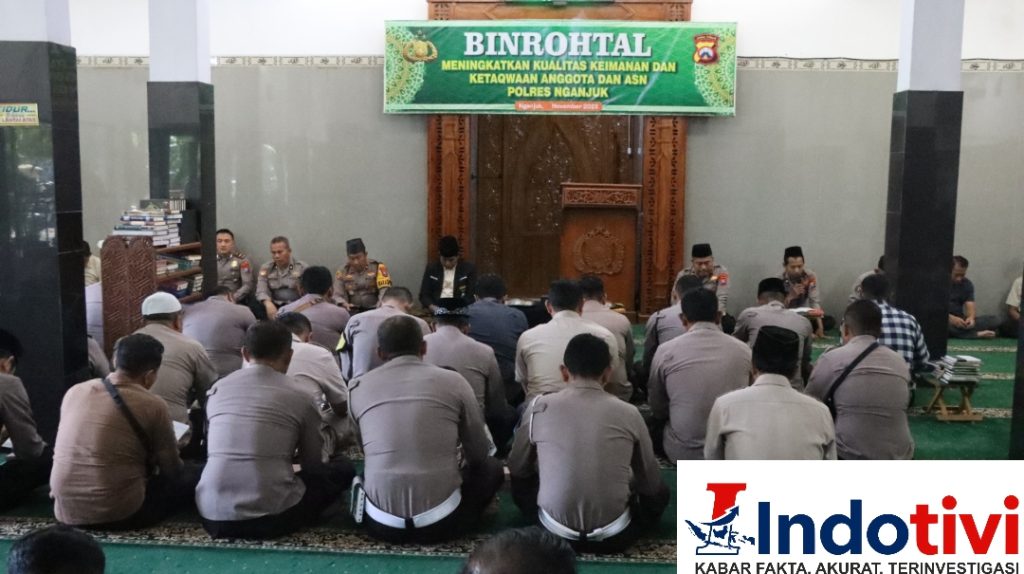 NGANJUK, INDOTIVI, β Polres Nganjuk kembali menyelenggarakan kegiatan pembinaan rohani dan mental (Binrohtal) di Masjid Al-Ikhlas Polres Nganjuk, Jumat (20/11/2025). Kegiatan rutin ini diikuti oleh Pejabat Utama (PJU), anggota, serta ASN Polres Nganjuk dan menghadirkan Ulama Kamtibmas Polsek Prambon, KH. Imam Subaweh, sebagai penceramah.