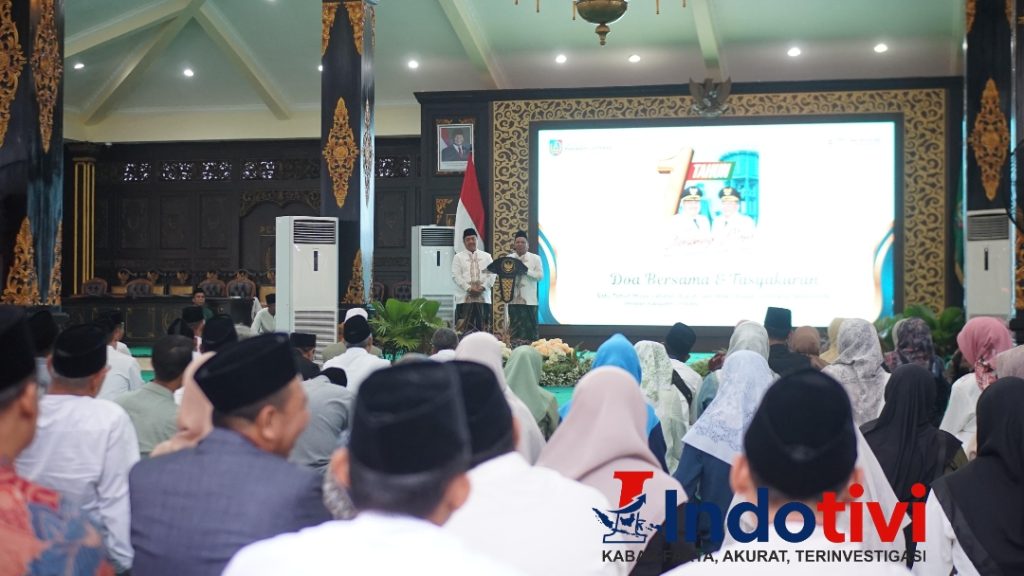 JOMBANG, INDOTIVI ,– Menandai satu tahun masa bakti kepemimpinan di Kabupaten Jombang, Bupati Warsubi, S.H., M.Si., bersama Wakil Bupati Salmanudin, S.Ag., M.Pd., menggelar acara Doa Bersama dan Tasyakuran sederhana di Pendopo Kabupaten Jombang, Jumat (20/2/2026) sore.