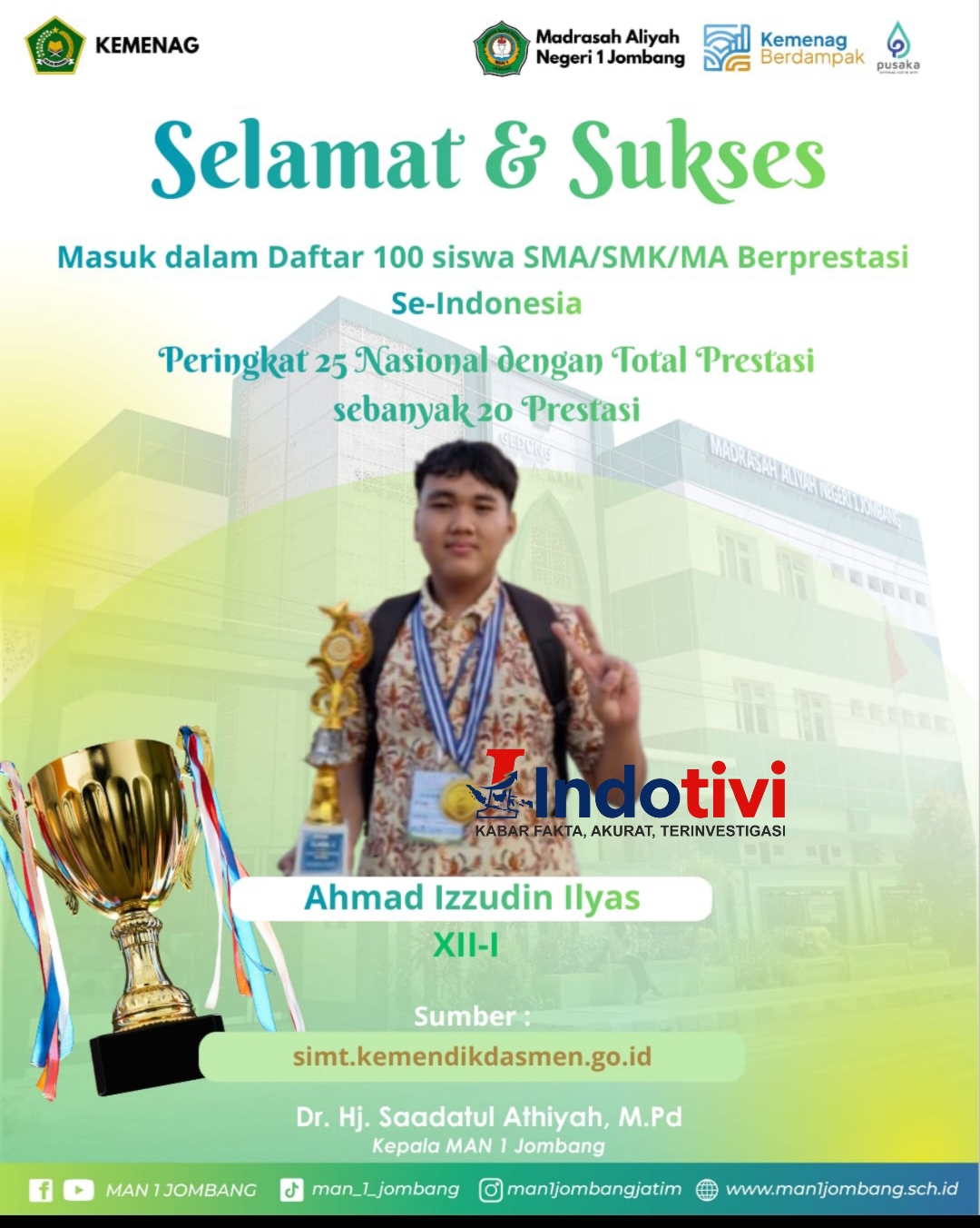 JOMBANG,INDOTIVI, – Madrasah Aliyah Negeri (MAN) 1 Jombang meraih kebanggaan baru setelah salah satu siswanya,...