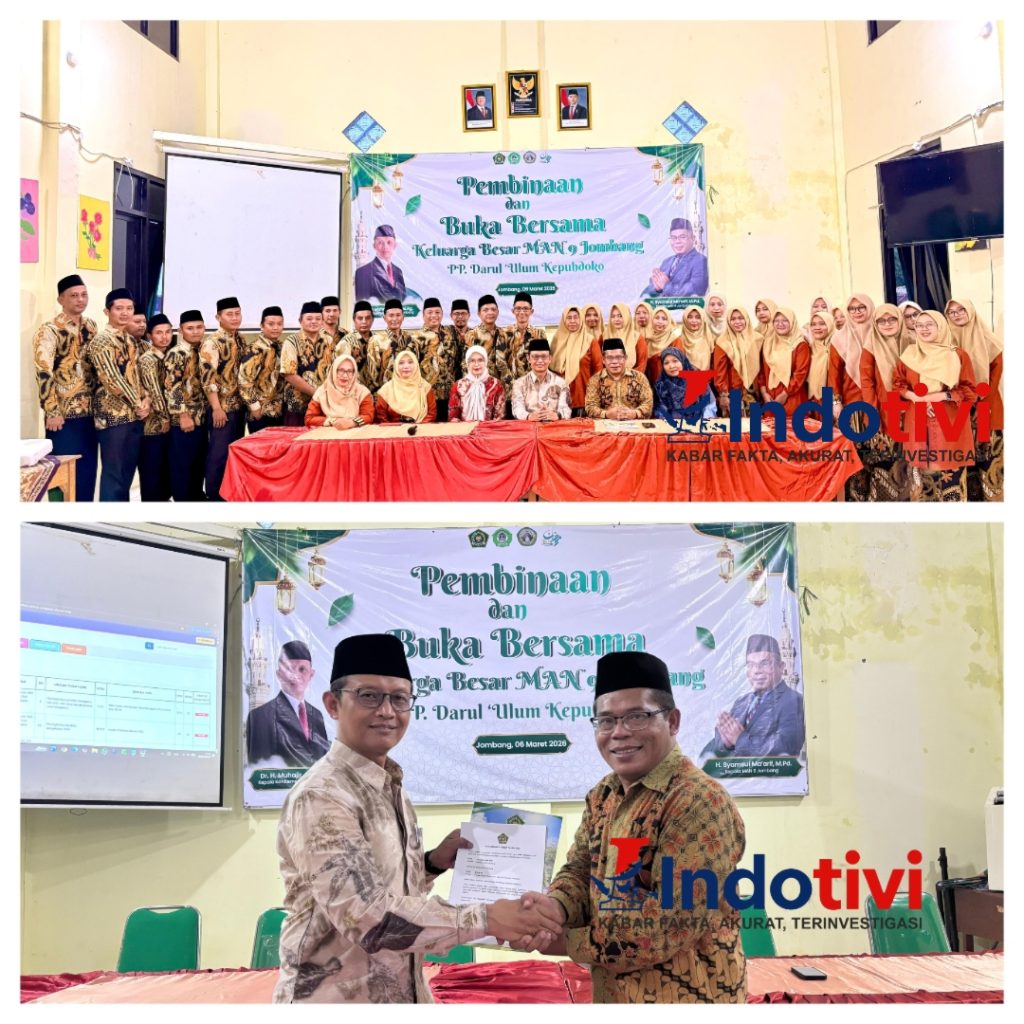 JOMBANG,INDOTIVI, – MAN 9 Jombang,Jumat 6 maret 2026,menggelar kegiatan pembinaan bagi para guru dan tenaga kependidikan (tendik), yang diikuti dengan penandatanganan pakta integritas kinerja Aparatur Sipil Negara (ASN) sebagai komitmen bersama dalam menjalankan tugas demi terwujudnya madrasah yang unggul dan berkualitas. Acara ditutup dengan sholat Maghrib berjamaah dan buka bersama.