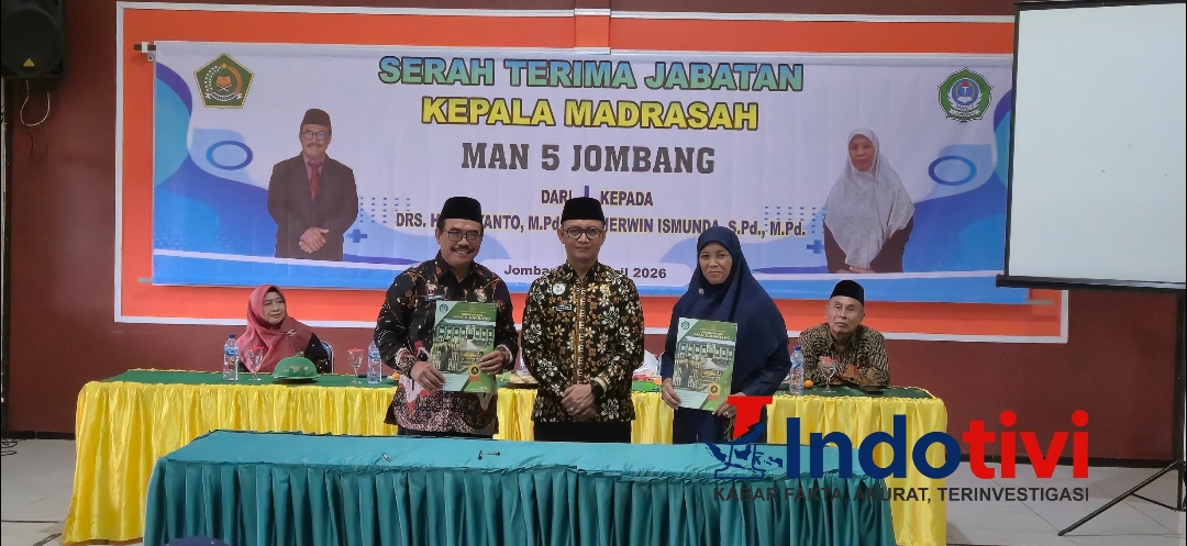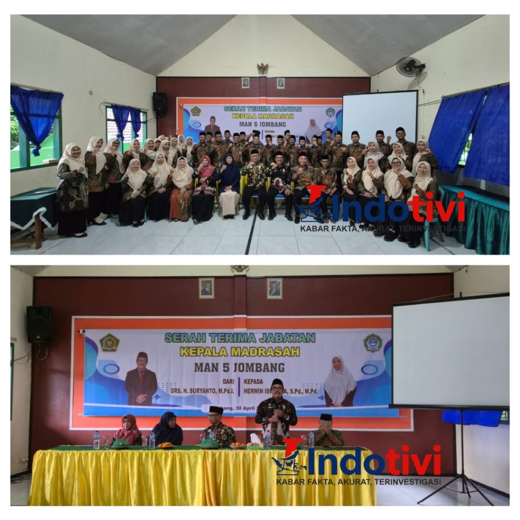 JOMBANG, INDOTIVI,– Acara serah terima jabatan Kepala Madrasah Aliyah Negeri (MAN) 5 Jombang resmi digelar pada hari ini, Kamis (30/04). Acara ini menandai perpindahan kepemimpinan dari Drs. H. Suryanto, M.Pd. kepada Herwin Ismunda, S.Pd., M.Pd.