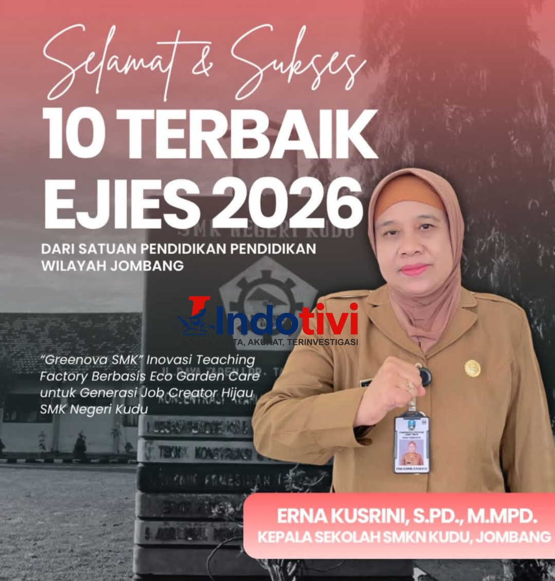 JOMBANG, INDOTIVI, – SMK Negeri Kudu Jombang meraih prestasi membanggakan dengan masuk dalam peringkat 10 Terbaik Evaluasi Jasmani, Intelektual, Emosional, dan Spiritual (EJIES) Tahun 2026 untuk wilayah Jombang. Keberhasilan ini diperoleh berkat kontribusi penuh dari Kepala Sekolah, Erna Kusrini, S.Pd., M.MPd.